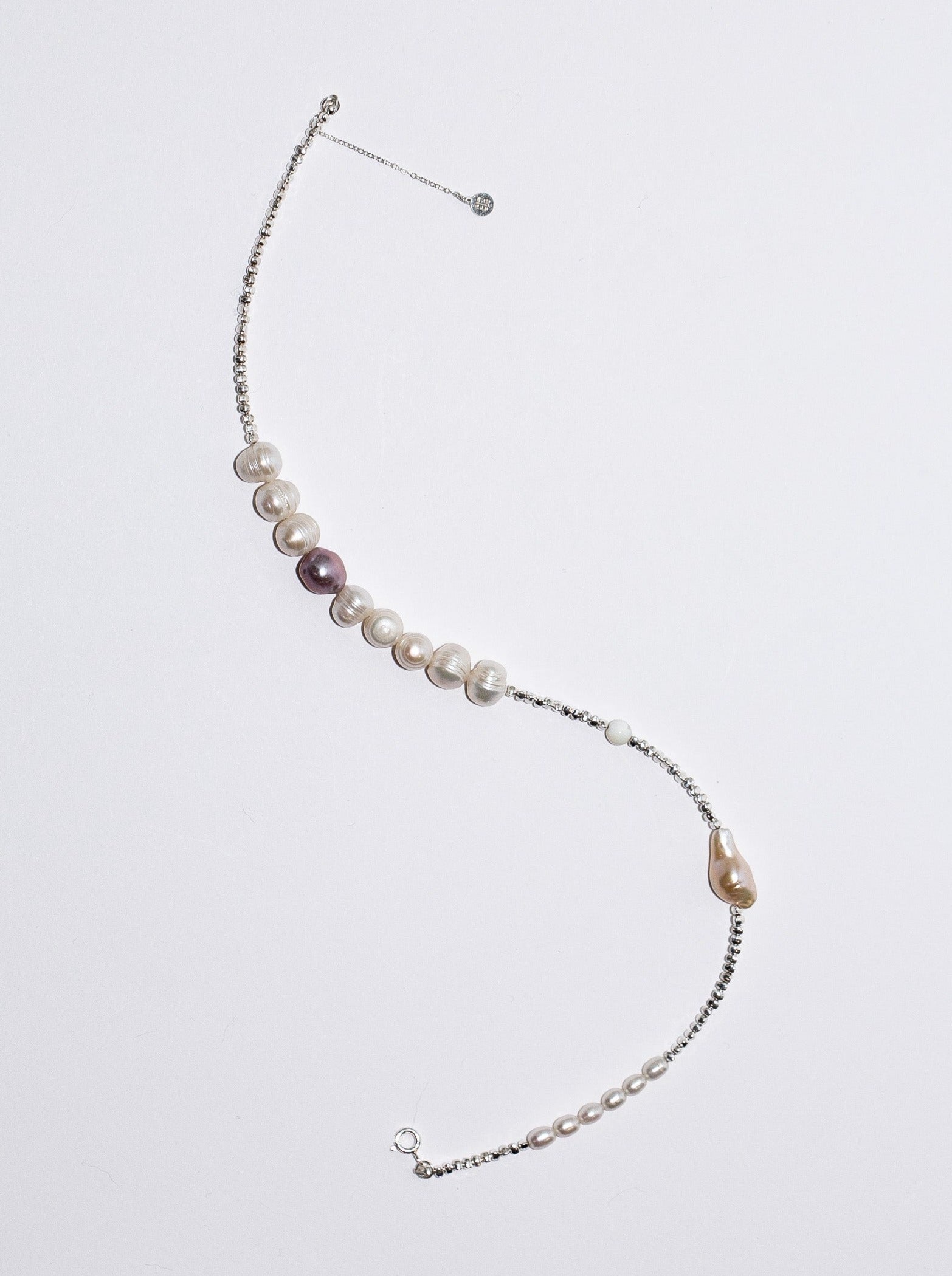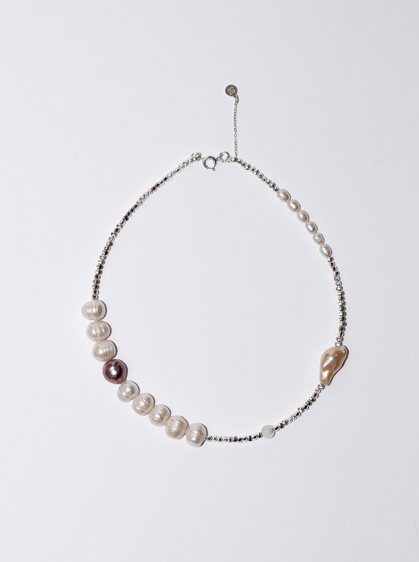 This necklace tells a story of continuity and change, as it gently rests around the neck, offering a versatile look that is both refined and edgy. It's perfect for those who appreciate the subtle drama of nature's own designs and seek to echo that in their personal style. The "Lustrous Cascade Necklace" is more than an accessory—it's a celebration of the natural world's timeless allure.