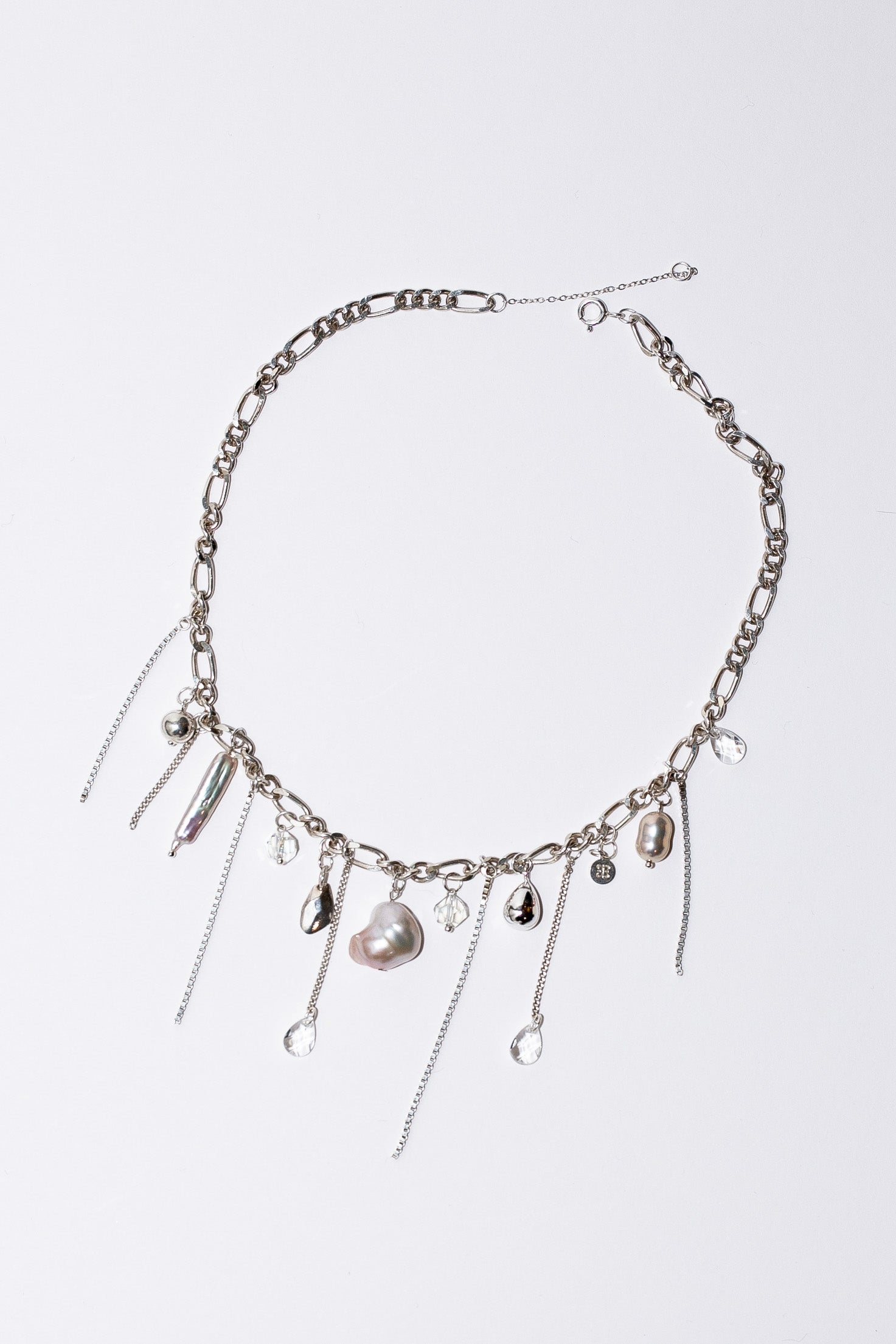 Embracing the whims of nature and the fluidity of water caressed by a gentle breeze, the "Zephyr's Ripple Necklace" from our Ripple series is a tribute to the ceaseless journey from source to sea. This piece encircles the wearer with the grace of meandering streams and the serenity of a tranquil pond. Its pearls and pendants dance like drops of water in the wind, a symphony of movement that wraps endlessly around, embodying the spirit of nature's own paths — never straight, but always true. From the first clasp to the final drape, it is an endless embrace of organic elegance.